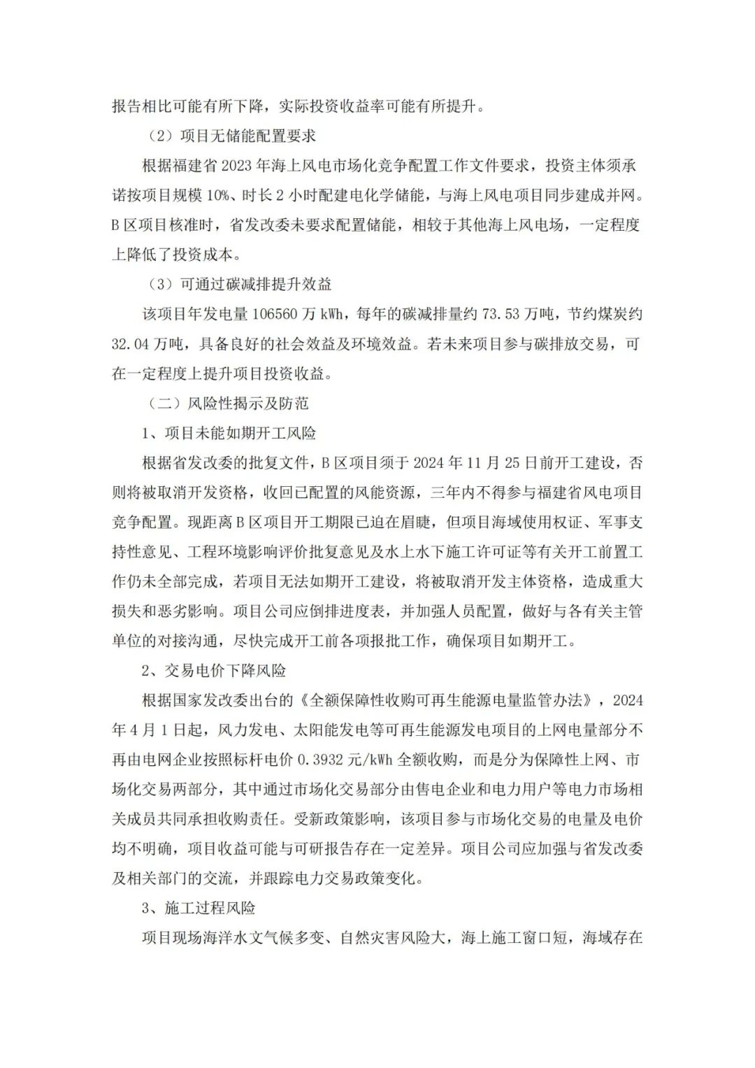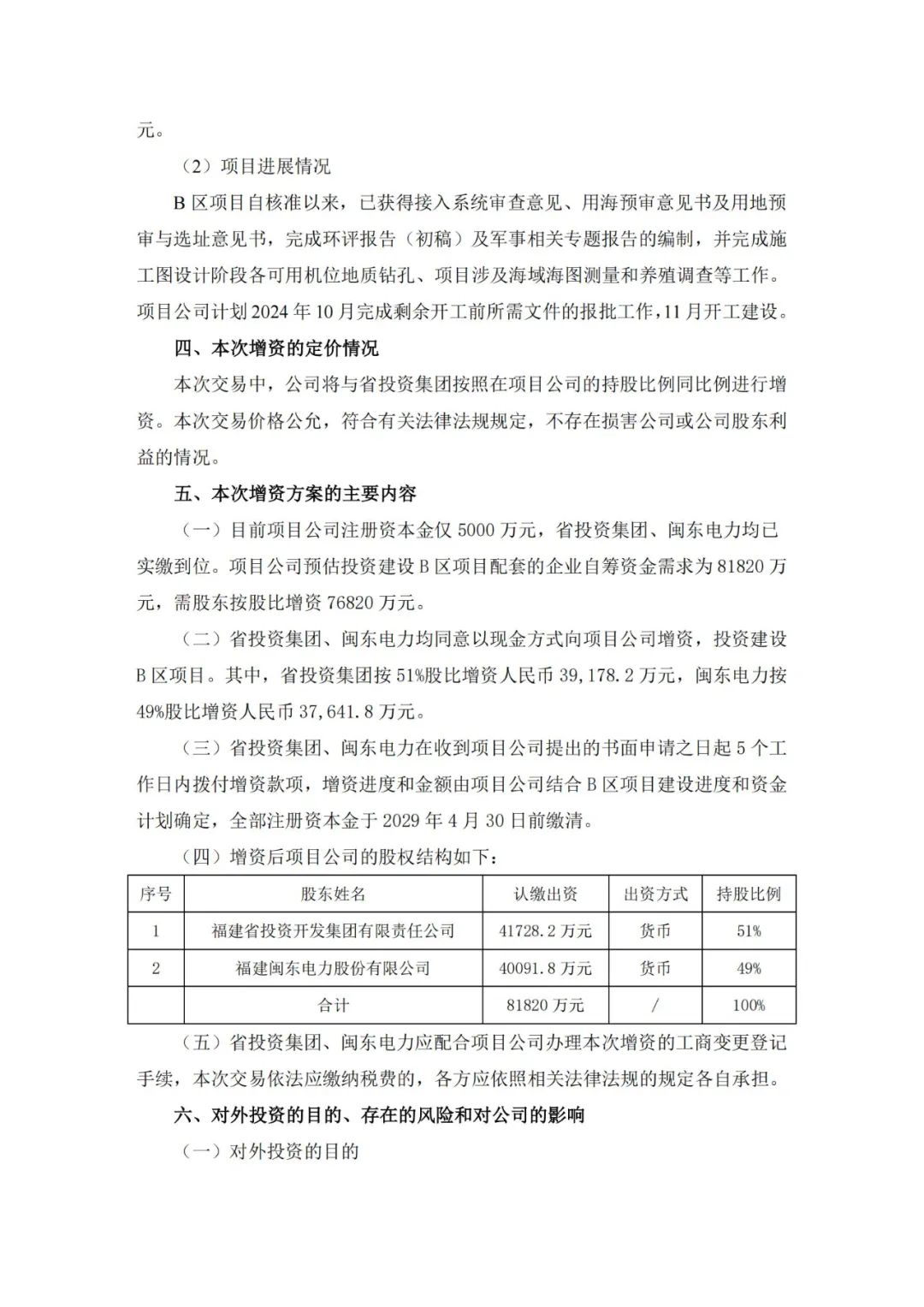 霞浦闽东海上风电有限公司计划2024年10月完成剩余开工前所需文件的报批工作,11月开工建设。