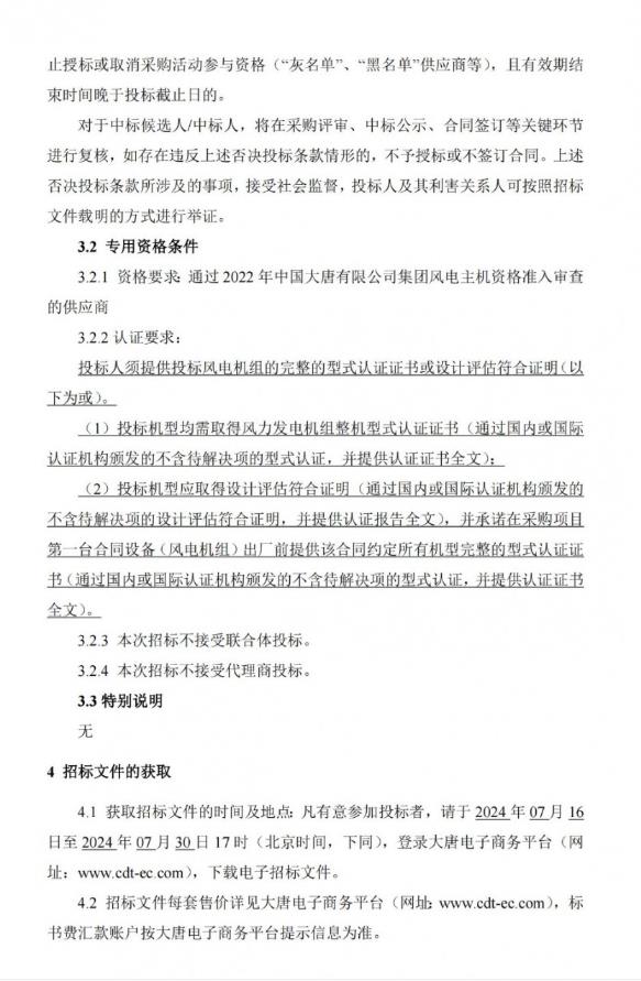 7月16日,中国大唐集团有限公司2024-2025年风力发电机组及附属设备(含塔筒)年度框架招标公告。