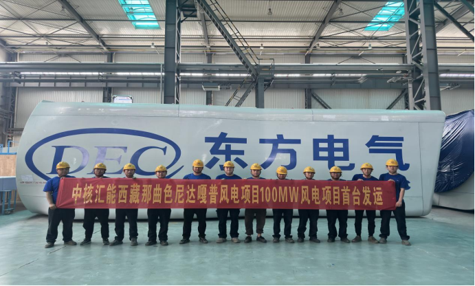 近期,中核汇能西藏那曲色尼达嘎普100MW风电项目首台风电机组在东方酒泉风电下线并发运。