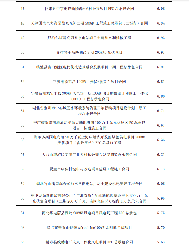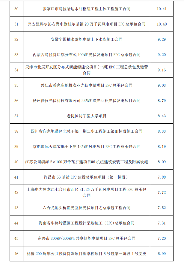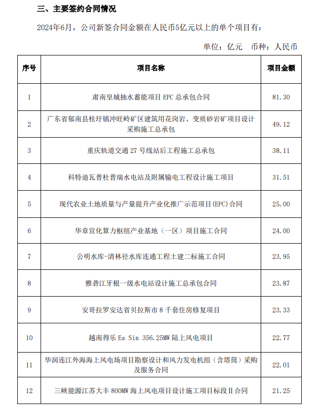 其中,2024年6月,公司新签合同金额在人民币5亿元以上的风电项目有15个。