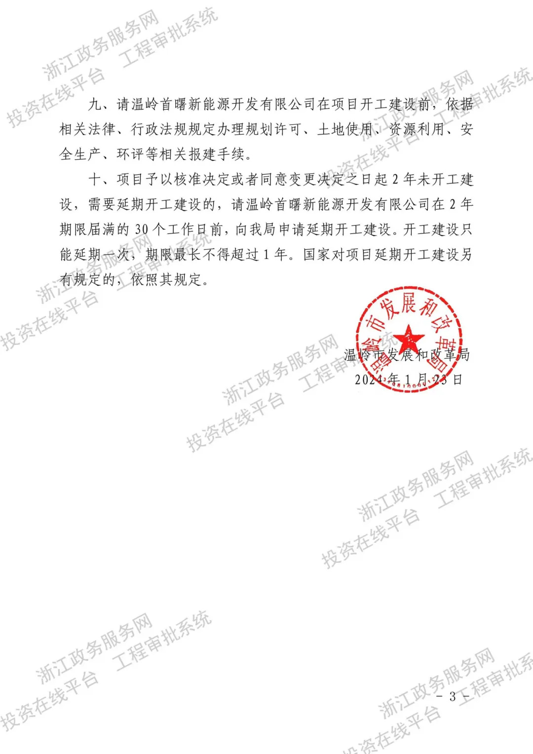近日,浙江省台州市温岭市发展和改革局发布《关于温岭1号海上风电建设项目核准的批复》、《关于温岭2号海上风电建设项目核准的批复》,同意建设这两个海上风电项目。